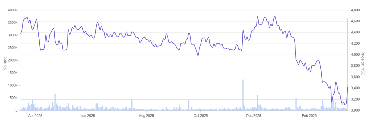 L&T Technology Services 1 Year Share Price Chart