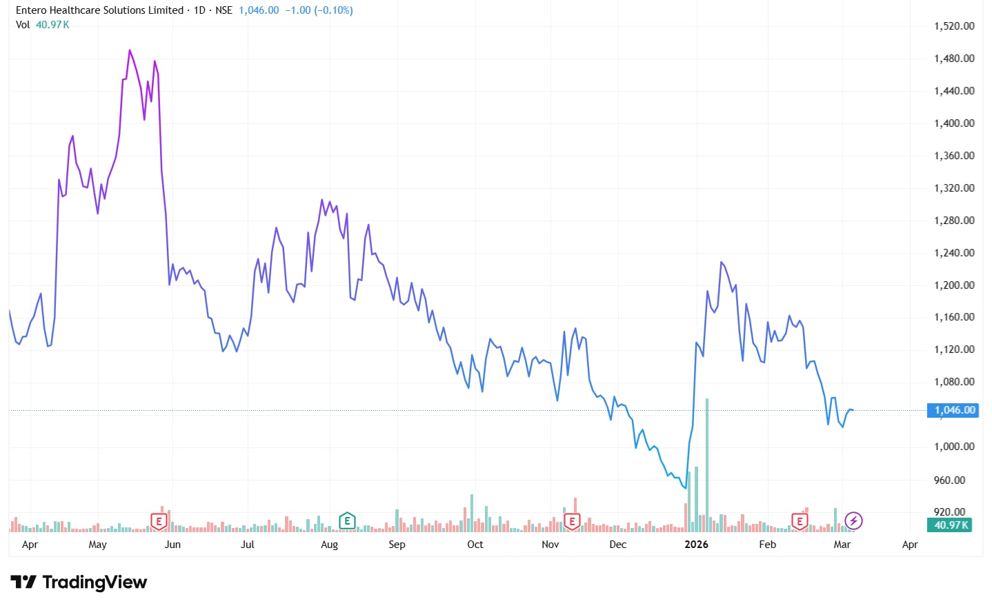 1-Year Share Price Chart of Entero Healthcare Solutions Ltd.