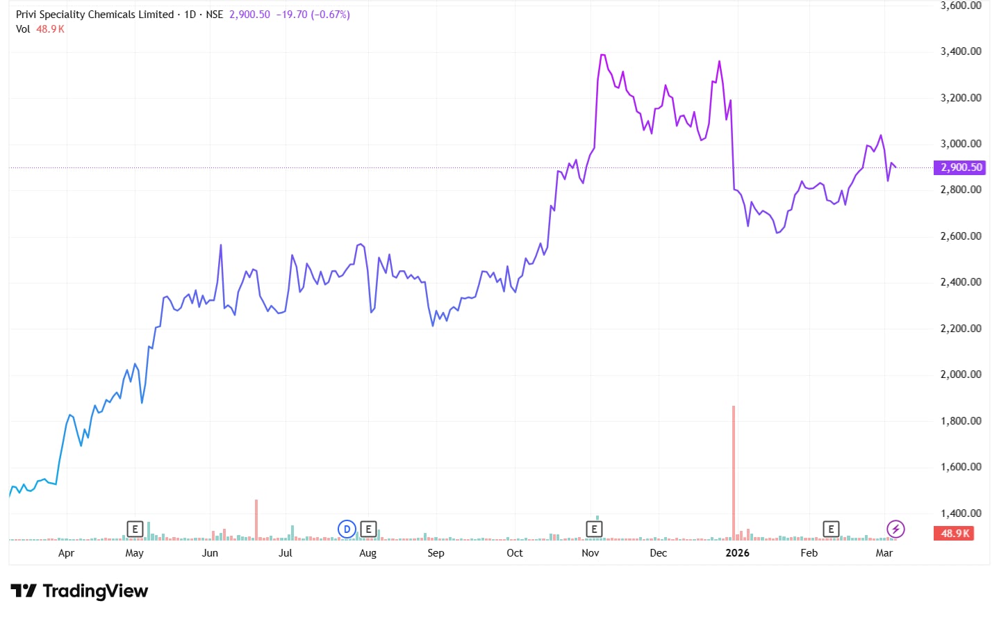 1-Year Share Price Chart of Privi Specialty Chemical Ltd.