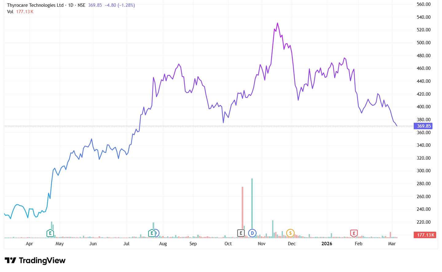 1-Year Share Price Chart of Thyrocare Technologies Ltd.