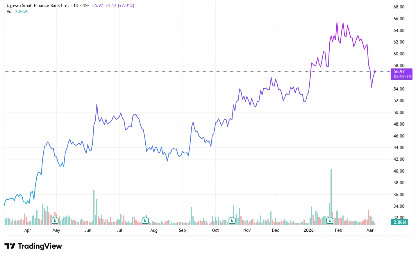 1-Year Share Price Chart of Ujjivan Small Finance Bank Ltd.