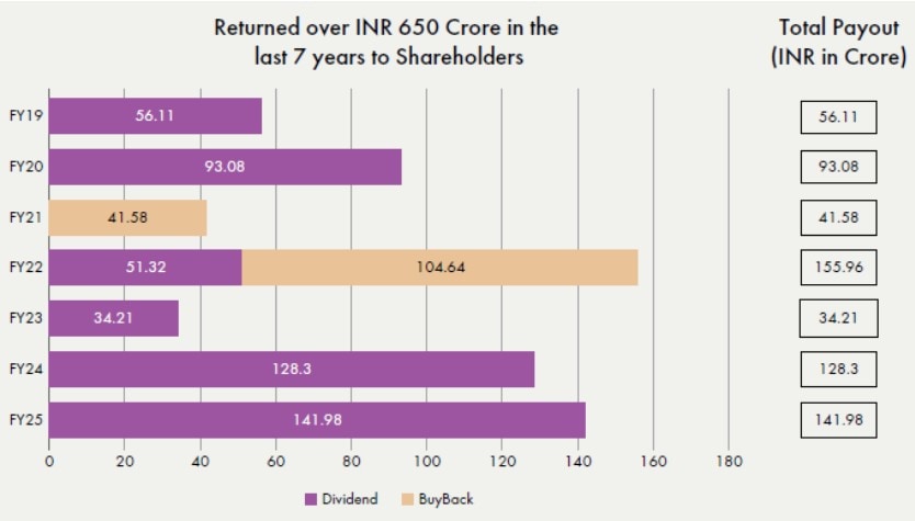 This systemic approach has allowed it to return over ₹650 crore to its shareholders over the last seven years through dividends and buybacks.